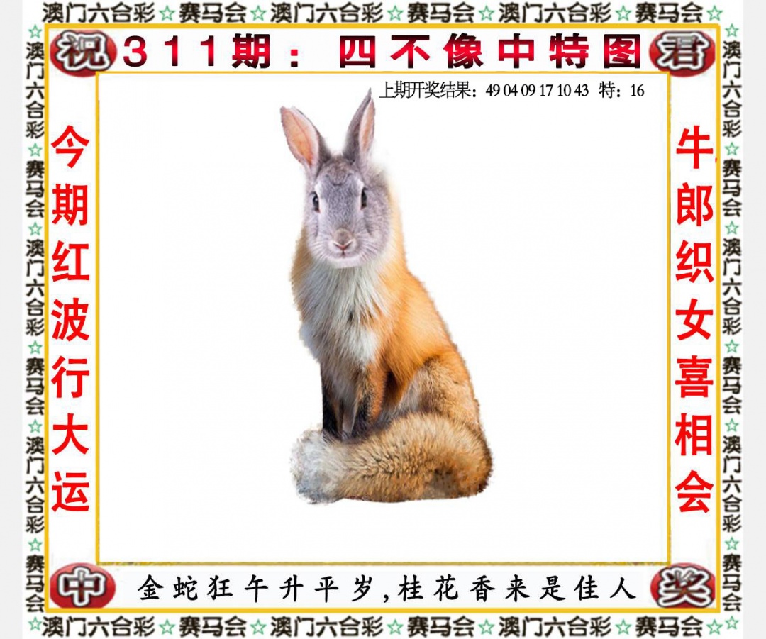 | 304期 | 《兔》 | 《红双》 | 《9尾》 | 开:猴10准 |